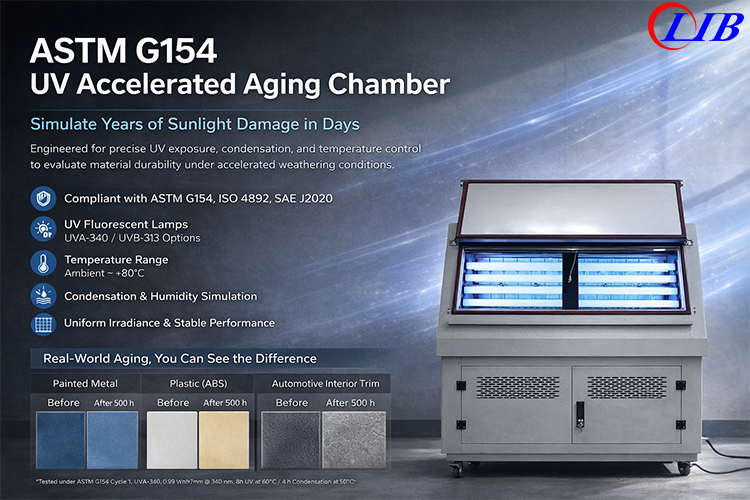Industrie LIBOffre des chambres de test de vieillissement ASTM G154 de haute précision conçues pour la durabilité, la stabilité et la personnalisation. Les principaux avantages comprennent: