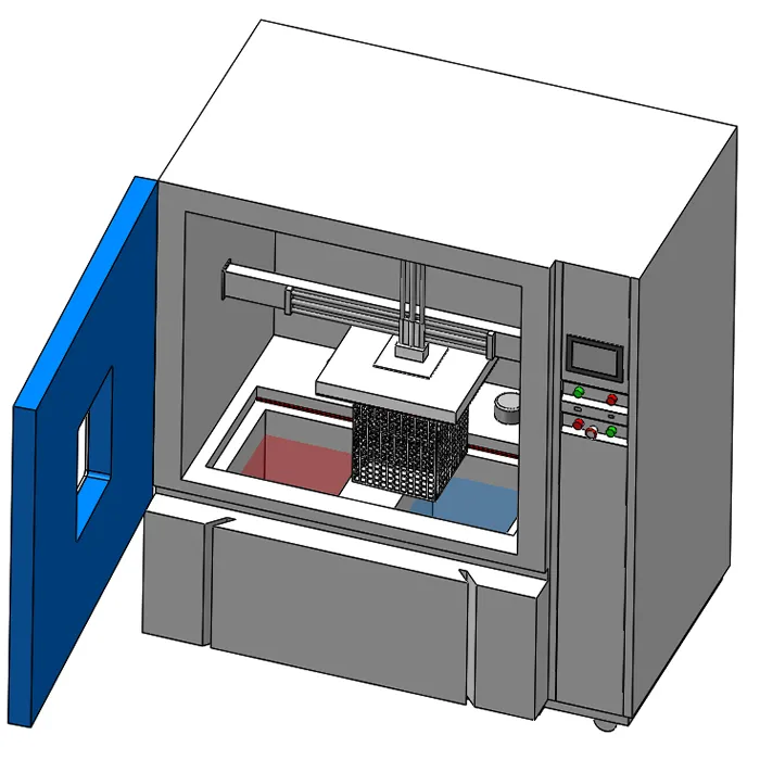 | Chambres chaudes et froides | Réservoirs de liquide indépendants avec contrôle précis de la température. Une uniformité thermique élevée garantit que chaque surface de l'échantillon subit une contrainte égale. Construit avec des matériaux résistant à la corrosion pour manipuler des huiles, des fluides fluorés ou des liquides corrosifs. |  |