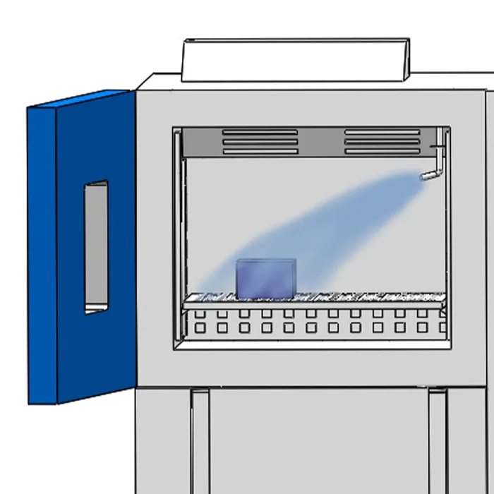 Le DUT reste dans une seule salle de travail tout au long du test, éliminant le transfert mécanique entre les zones de température. Le choc thermique est généré exclusivement parEau d'éclaboussure froide contrôlée, Entièrement aligné sur le principe de test de K-12 LV124 et évitant les contraintes mécaniques inutiles.